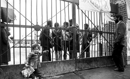 美联社图片:1979年11月6日,一名伊朗男孩在被占领的美国驻伊大使馆前,他的手中捏着一张伊朗宗教领袖霍梅尼的照片。(章田/雅龙)