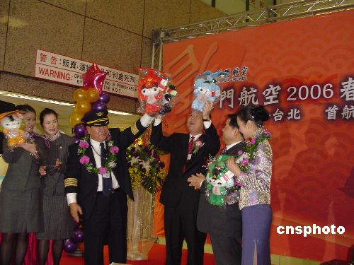 图:厦门航空公司春节包机首航抵达台北桃园机场