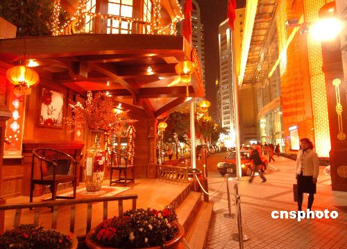 香港铜锣湾闹市区张灯结彩﹐街头装饰的新颖别致﹐迎接中国农历新年的到来。作者:赵振清