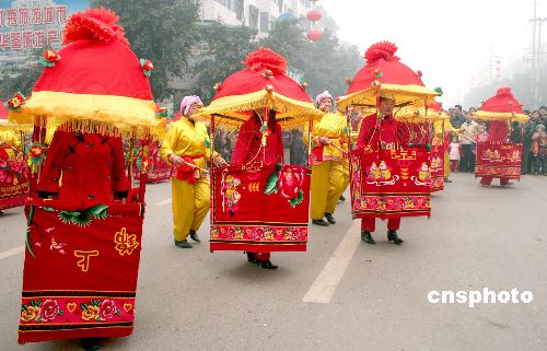 1月29日正月初一,四川华蓥市3万多市民汇聚蓥城十里长街,观看和参与云童舞、连响舞、滑竿抬幺妹等20余项华蓥山民俗文化大展演,欢天喜地闹新春。邱海鹰