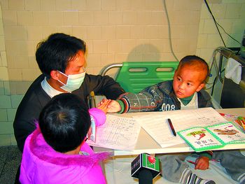 中新网1月31日电 据湖南红网-长沙晚报报道,除夕之夜,湖南省桂阳县人禽流感患儿小欧阳度过了一个特殊的团圆之夜。在湖南省儿童医院的精心安排下,他的父亲欧阳细华和其孪生妹妹欧阳双云一同来到小欧阳的隔离病区,一家三口幸福地欢聚在一起。