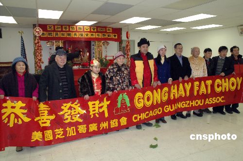 二月四日,美国芝加哥北华埠举行迎春游行,图为广州协会的彩车。中国新年前后,旅居在大芝加哥地区的华人华侨仍然保持着传统的过节方式,用狂舞的瑞狮、喜庆的对联、雷鸣的爆竹以及各种美食来欢庆佳节,同时也表达他们的思乡之情。一系列的游行、聚会和联欢活动也正在各个华人社区和家庭热闹举行。作者:张大卫
