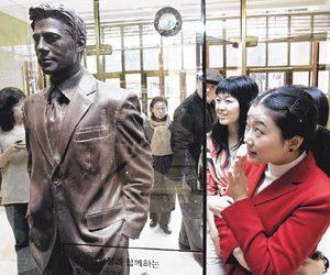 中新网2月6日电 据香港媒体报道,情人节将至,人人都希望与梦中情人度过。型男布拉德·皮特是不少女性的梦中情人,为了一解女Fans单思之苦,韩国首尔一家百货公司展出一个以朱古力制成的皮特塑像,为情人节做宣传。人像以八十公斤朱古力制成,与真人比例一模一样,吸引不少女士到百货公司观赏,虽然并非真人,但她们也看得如痴如醉。