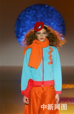 2006年2月13日,马德里时装周,模特在展示西班牙设计师Agatha Ruiz的秋冬作品。
