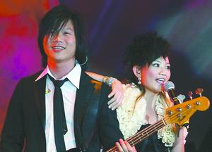中新网2月15日电 据东方早报报道,昨夜,在上海大舞台举行的梁静茹演唱会爆棚,加上演出中梁静茹大胆挑逗似地频频向玛莎靠近,最后更是送上拥抱,而玛莎也是两次送上漂亮的红玫瑰,让整个现场热闹非凡、浪漫无比。