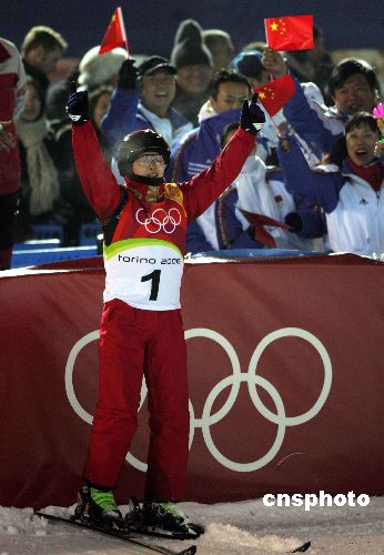 都灵时间2月22日晚,中国选手李妮娜在冬奥会自由式滑雪空中技巧决赛中以197.39分的成绩夺得银牌。作者:武仲林
