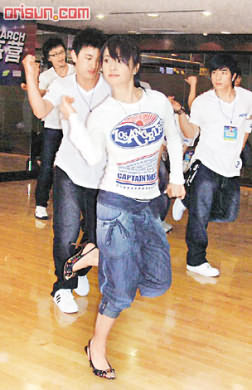 中新网2月23日电 据香港媒体报道,刚转投EMI旗下新公司的蔡依林(Jolin),最近被指跟绯闻男友罗志祥(小猪)在新年期间出双入对,又指小猪舍S.H.E的Selina而投Jolin怀抱。昨日,Jolin现身香港出席“百事新星音乐训练营”,与参赛者交流音乐心得,又示范舞姿,期间她所穿的低腰裤不时掉下,露出黑白间内裤边,令她尴尬得要猛抽裤头。