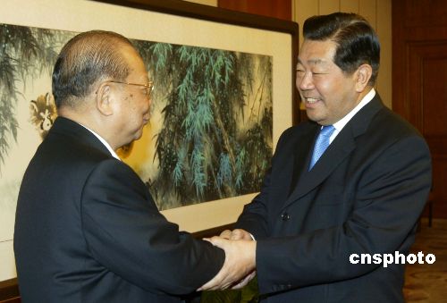 三月二日,全国政协主席贾庆林在北京会见曾宪梓先生。作者:史利