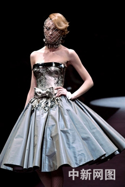 为期一周的巴黎2006-07秋冬成衣展于2006年2月27日在法国首都巴黎开幕。图为一名模特在展示荷兰设计师 Viktor & Rolf 的作品。