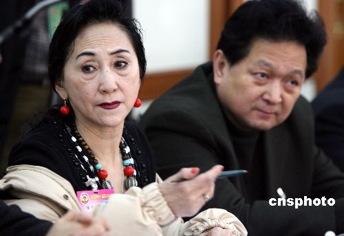 三月四日,全国政协十届四次会议侨联界委员和部分在京海外侨胞在北京举行座谈会,强烈谴责陈水扁“废统”行径。全国政协委员、著名舞蹈家陈爱莲参加会议讨论。作者:廖文静