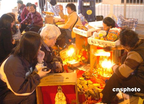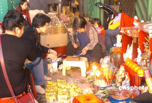 记者就见到一位母亲带着女儿,极其虔诚地在祈求着,看到“小人”被烧,眼中都闪着激动的泪花;也见到一位壮硕男子,要让婆婆用“贵人符”周身扫好几遍;还有三位白领妙龄女郎结伴而来,看到所打“小人”被白虎吞吃,笑眯眯一脸轻松,立刻相约去时代广场逛街了。