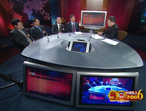 你好,观众朋友。欢迎收看中央电视台中文国际频道正在直播的《今日关注》两会特别节目《中国焦点——2006》。