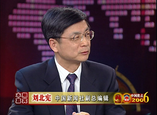 | 聚焦三月的北京,中国人用智能决策未来,用爱心规划家园,用责任拥抱世界。2006的这个春天,中国播下了新的种子,13天的真诚互动,13个牵动百姓的期待。中央电视台中文国际频道《今日关注》携手中国新闻社等多家媒体倾听百姓声音,解读《中国焦点》。