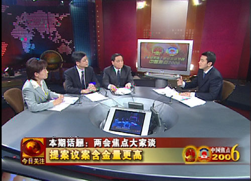 非常感谢三位嘉宾今天和我们一起来盘点两会的热点。同时也感谢观众朋友们收看本期的《今日关注》特别节目——“中国焦点2006”,我们明天同一时间,再会。