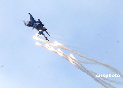 图:苏-27单机螺旋上升释放烟花彩带
