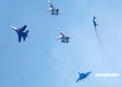 图:张家界苏-27战机表演“郁金花开”