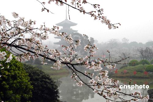 2006年3月21日,武汉东湖磨山风景区2006中国武汉樱花节正式拉开惟幕。由于受低温气候的影响,东湖梅园的梅花还在继续开放,市民们可同时观赏到樱、梅争春的美景。作者:楚天行