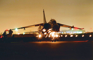 半夜时分,气温也很快降了下来,顺利完成攻击任务的“飞豹”战机披着海雾一架架迅速下降高度,机翼灯在黑夜中拖着美丽的弧线安全返航。顿时,整个机场马上又忙碌起来。
