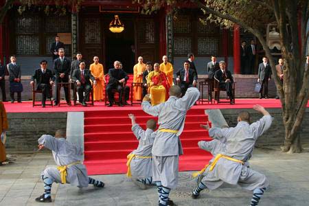 少林寺武僧表演武功(少林寺外联处供图 摄影 释延坛 释延江)