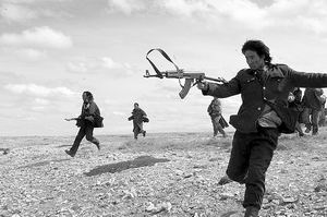 情景:清晨从车中醒来;从车窗发现盗猎分子;发现藏羚羊的尸体;盗猎者在对岸;鸣枪警告盗猎分子;队员过河;押解盗猎者回来;人抓获,却不见藏羚羊皮和枪支;押解归来;找到皮子;查寻赃物;盗猎者戴着手铐推车(特写都是犯人戴着手铐推车);犯人跑了,队长发火;雪地追踪