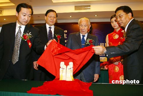 | 三月二十四日,中国篮球协会、“贺龙杯”中国业余篮球公开赛组委会在北京正式聘请前国际奥委会主席、国际奥委会终身名誉主席萨马兰奇出任中国业余篮球公开赛顾问,并向萨马兰奇颁发由“寿山石”精心雕刻而成的聘书。李元伟(左二)萨马兰奇(左三)等为“寿山石”聘书揭开神秘面纱。“贺龙杯”中国业余篮球公开赛自二零零五年十二月二十四日在北京开幕以来,已有北京、辽宁、甘肃、浙江、广东、安徽等赛区陆续开始了比赛。作者:盛佳鹏