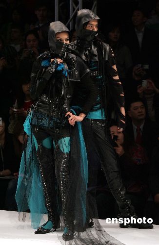 “汉帛奖”第十四届国际青年时装设计师作品大赛三月二十六日在中国国际时装周二零零六/二零零七秋冬系列发布会上举行,图为芬兰设计师米娅.哈姆斯玛设计前卫的婚礼服饰作品“新娘的嫁衣”。作者:毛建军
