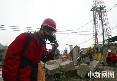 图为压井前抢险人员身背呼吸机作准备。郭晋嘉