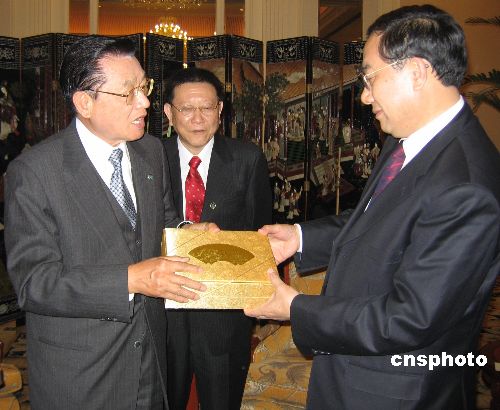 三月三十一日,中国国民党副主席江丙坤向郑州市委书记王文超赠送礼物。当日中午,郑州市委书记王文超在郑州会见前来参加丙戌年黄帝故里拜祖大典的中国国民党副主席江丙坤一行。会见结束后,王文超向江丙坤一行赠送了河南博物院镇馆之宝“莲鹤方壶”的精美复制品,江丙坤回赠了来自宝岛台湾的礼物。作者:乔楠