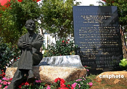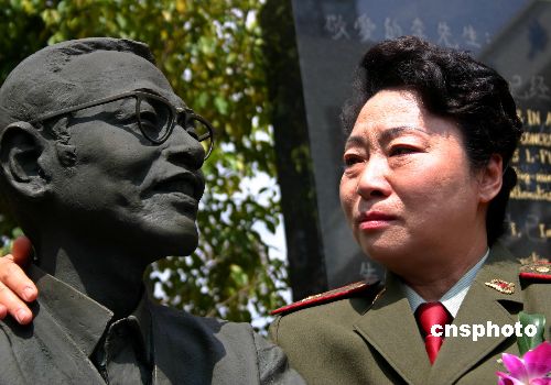 4月4日上午,陈景润的夫人由昆深情凝视着先生的塑像。当日,厦门大学在其数学科学学院所在的海韵校区举行陈景润院士铜像揭幕仪式。铜像展现的是陈景润的坐姿,身着毛衣布鞋的“陈景润”自然憨厚地微笑着。作者:常海军