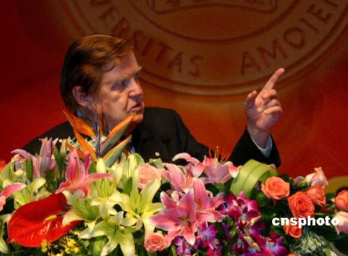4月6日,在厦门大学迎来85周年校庆之际,被誉为“欧元之父”的1999年诺贝尔经济学奖获得者罗伯特·蒙代尔教授在厦门大学为同学们做了题为《世界经济格局中的中国:前景与挑战》学术讲座。 作者:常海军