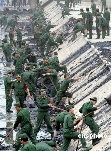 4月9日,武警石家庄指挥学校400余名干部学员手拿铁锹、脸盆等工具,来到石家庄市工农路段的民心河内进行义务清理淤泥活动。当日,广大武警干部学员在臭气熏天的污泥中闻着刺鼻的臭味干劲不减,他们充分发扬不怕苦、不怕累、不怕脏的战斗精神,清理总长约1.5公里的河道,为治理民心河、美化环境贡献一份力量,受到过往群众的高度好评。作者:余洪恩