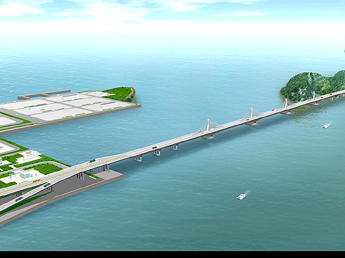 2 . 2005年5月25日东海大桥全线贯通仪式在大桥主通航孔桥面举行。中共中央政治局委员、上海市委书记陈良宇出席仪式,参加大桥工程建设的劳动模范和建设功臣代表为大桥贯通剪彩。上海市委副书记、市长韩正和国家交通部副部长翁孟勇出席仪式并出席贯通仪式并致辞。这是中国建成的第一座外海跨海大桥。