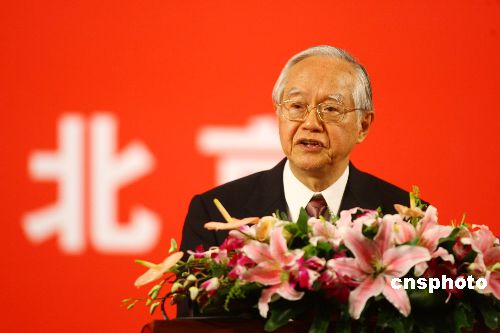 四月十四日,国共两岸经贸论坛在北京开幕,著名经济学家吴敬琏在论坛上发表演讲。作者:盛佳鹏
