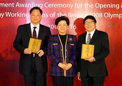 中新网4月16日电 据北京奥组委官方网站消息:4月16日上午,北京奥组委向第29届奥运会开闭幕式第一批主要工作人员颁发聘书,张艺谋任总导演,张继钢、陈维亚任副总导演。