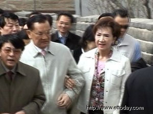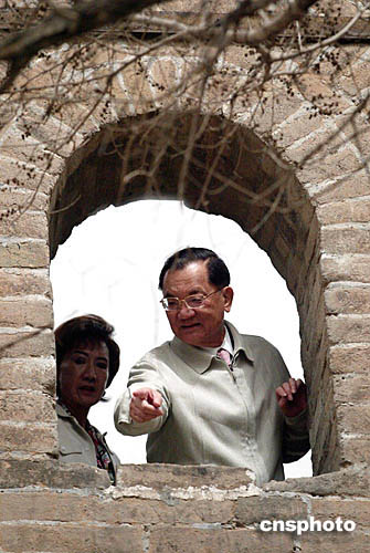 中新网4月17日电 据台湾媒体报道,结束了两岸经贸论坛、“连胡会”等重头戏行程,国民党荣誉主席连战17日上午又到北京近郊八达岭长城当起“好汉”,不过随行的记者们还是把焦点放在随行的夫人连方瑜身上。