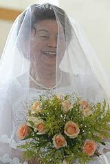 台湾籍慰安妇阿嬷圆梦婚纱活动18日在深坑世新会馆举行,仅存28人,平均年龄84岁的慰安妇阿嬷们,穿戴白纱,实现花样年华的梦想。(台湾“中央社”图 郑杰文摄)