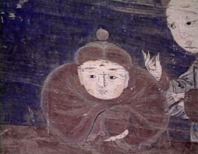 戏楼“下场”门板上刻有一个袖手把望、笑容可掬的大头娃娃,不管你站在什么位置,它都会同你正目对视,民间遂有“大头娃娃跟人转匝匝”之说。此为仓颉庙一奇观。