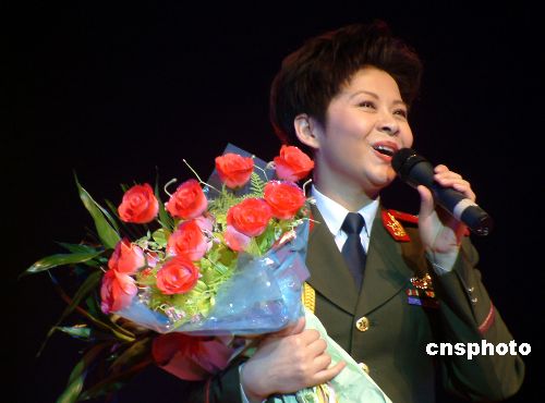 4月18日晚,山西阳城县影剧院座无虚席,著名歌唱演员董文华闪亮登场,在这里举办演唱会,为观众献上《十五的月亮》、《春天的故事》等歌曲。作者:张宏伟