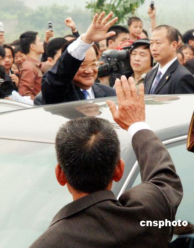 四月十九日上午十时三十分,连战一行结束了在祖地漳州马崎村的祭祖活动,向马崎宗亲挥手告别。作者:郑祚声