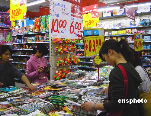 2006年4月23日,湖北宜昌一超市将积压的图书、杂志论斤卖,吸引了不少读者。作者:刘君凤