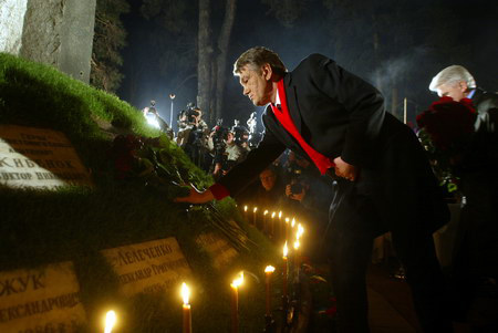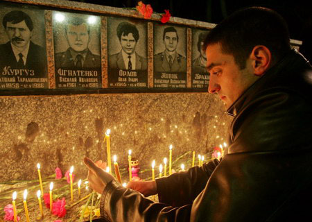 在切尔诺贝利核泄露20周年之际,当年的幸存者和他们的家人在26日凌晨相同的时间(北京时间早晨6时23分)举行了一系列的纪念活动。(春风)