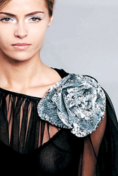 服装固然要华美诱人,但是配饰的魅力也不可小瞧,它不但可以起到点缀作用,更可提升服装搭配整体的层次感和设计感。在2006年春夏各大品牌秀展上,我们随处可见夸张奢华的装饰品的踪影,如Chanel今季的夸张配饰,给人留下了深刻印象。不管是千鸟格的粗呢初春大衣,还是黑色雪纺面料搭配黑色针织吊带衫的装扮,Chanel都佐以闪片巨型玫瑰胸花,极具震撼力和装饰性。让人们认识到春天的花朵,原来不只开在树梢枝头,还开在模特的衣襟和爱美者的心里。当然,闪片不只是金色和银色的一统天下,Chanel的黑色闪片裙装和手套,Anne ValérieHash混合金色湖蓝和粉色亮片长裙,也正在2006年春夏的时尚大道上流行。(赵嘉嘉)