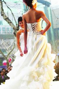 在选择婚纱时不能光看流行色,而是要看婚纱的颜色和新娘的肤色是不是相配。