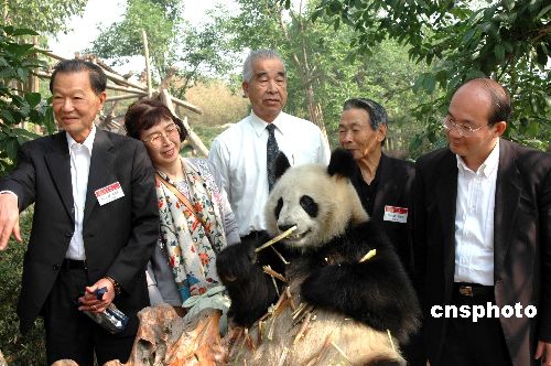 由台湾中国信托金融控股公司董事长辜濂松任团长、中国国民党副主席江丙坤任顾问的“台湾工商界川渝经贸考察团”一行,今天上午参观了成都大熊猫繁育研究基地,并与“国宝”亲密接触。