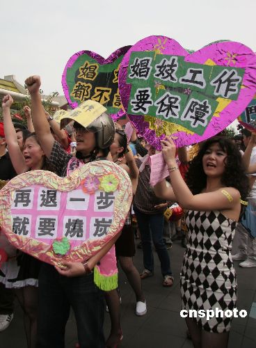 4月30日,台北日日春协会举办“要工作、反‘钓鱼’:性工作除罪”游行,包括私娼、流莺、艳舞小姐、同性恋等在内的上百人走上街头,提出多项诉求,呼吁成立性工作者工会、保障权益。作者:董会峰