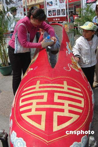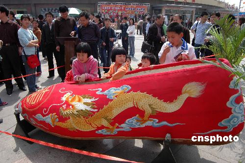 5月2日,一只长2.8米的绣花婚礼鞋亮相山东聊城。据了解,这只在山东聊城市五星百货广场展出的绣花鞋全长2.8米,宽0.87米,高0.71米,重63公斤,由7名技师耗时半年多时间精心制作而成。作者:张振祥