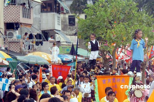 5月5日,香港长洲举办盛大的“太平清醮飘色巡游”及“抢包山”两个节庆气氛浓厚的活动。飘色是始于明末清初流传的民间传统艺术,由小孩装扮成民间故事人物,以立体舞台的形式游行表演。由于舞台的特殊设计,站在其上的小孩,恍如站在刀尖、杆顶,甚至凌空浮起;乡民合力抬着前行,使舞台上下微动,更显“飘”的特色。