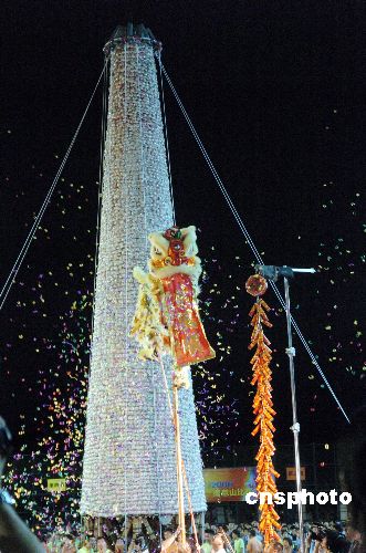 醒狮在“抢包山”开幕礼上表演。作者:洪少葵