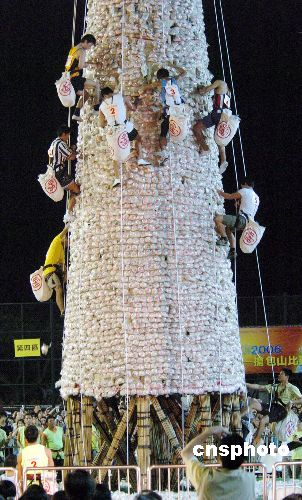 5月6日凌晨,香港长洲抢包山比赛,是太平清醮活动的另一个高潮,参赛选手身手矫健争夺冠军。