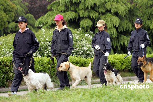 近日,记者获准探访位于上海的中国第一支女子警犬队。据介绍,该女子警犬队于二○○二年成立,五名队员全部毕业于上海公安高等专科学校。女警携带警犬经常在机场、宾馆、码头执行任务,她们纤细的身躯和身边威猛的警犬形成鲜明的对比,有人称她们是“带着警犬的霸王花”。作者:潘索菲